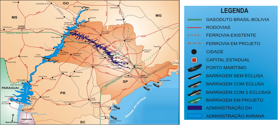 Nos últimos 50 anos, o Governo do Estado de São Paulo promoveu, nos rios Tietê e Paraná, a implantação de barragens equipadas com eclusas para permitir as embarcações vencerem os desníveis provocados pelos aproveitamentos energéticos. Conjuntamente efetuou a abertura de canais para melhoria das condições de navegação e sinalização da rota de navegação de todo o trecho. Consolidou, dessa forma, um sistema de transporte hidroviário interligado às malhas rodoviária e ferroviária.